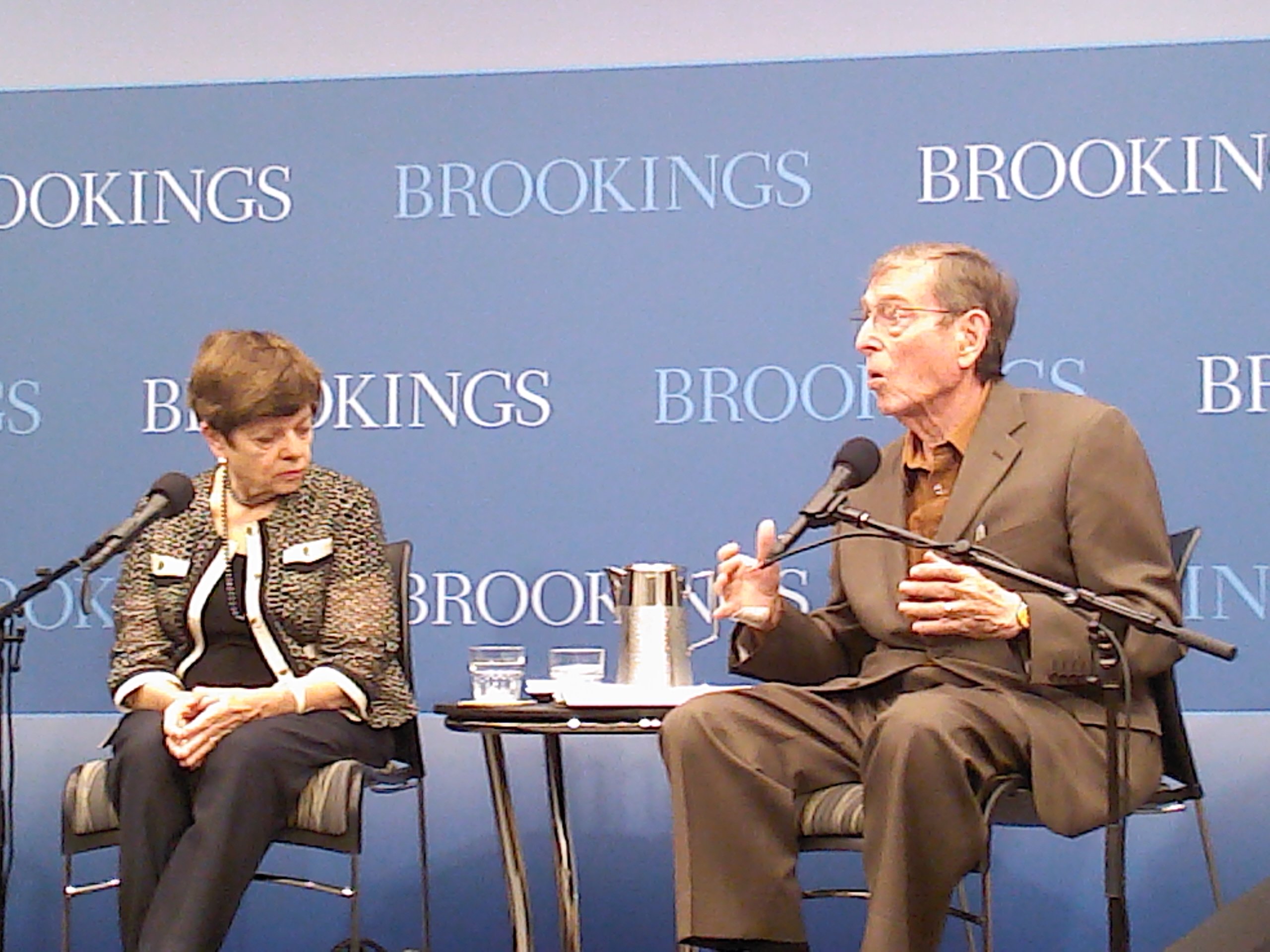 Republican Pete Domenici and Democrat Alice Rivlin spoke about the need to work with the other party to solve issues like the debt at the Brookings Institute